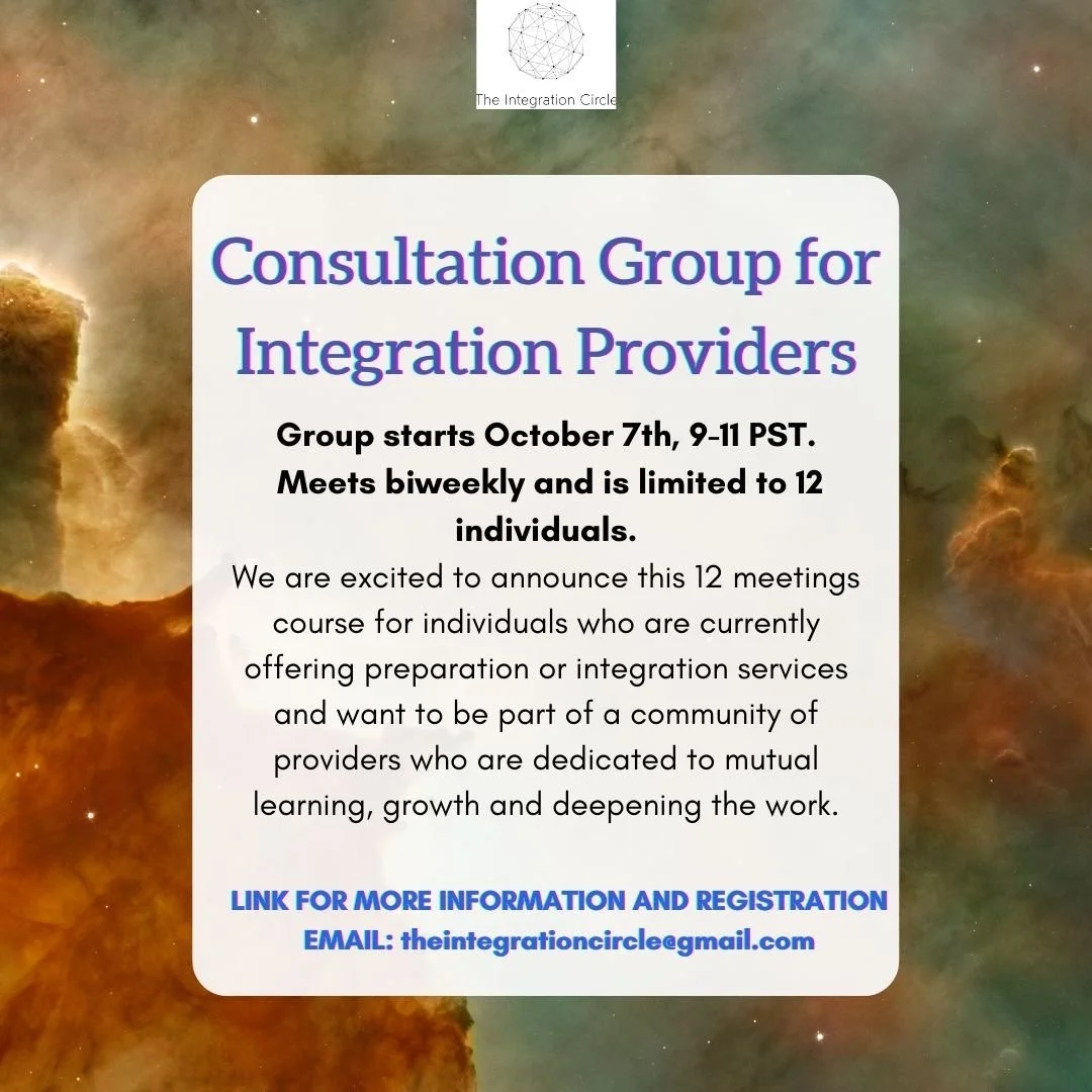I will be collaborating with Kyle Buller from Psychedelics Today & Dr. Ido Cohen from The Integration Circle to be creating a 8 week, bi-weekly consultation group for people currently providing integration services.